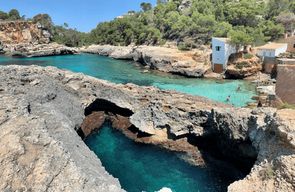 Nur 5 Minuten zu Fuß durch den Wald von Calo des Moro entfernt liegt die schöne Cala s’Almunia: ein winziger Fischerhafen, umgeben von einer zerklüfteten Bucht mit einem Felsenfenster, einem See und anderen Felsformationen. Hier herrscht eine intimere Atmosphäre als im Calo des Moro nebenan, das aufgrund seiner Beliebtheit oft überfüllt ist. Wenn du also Ruhe und Frieden bevorzugst, solltest du hierher kommen.